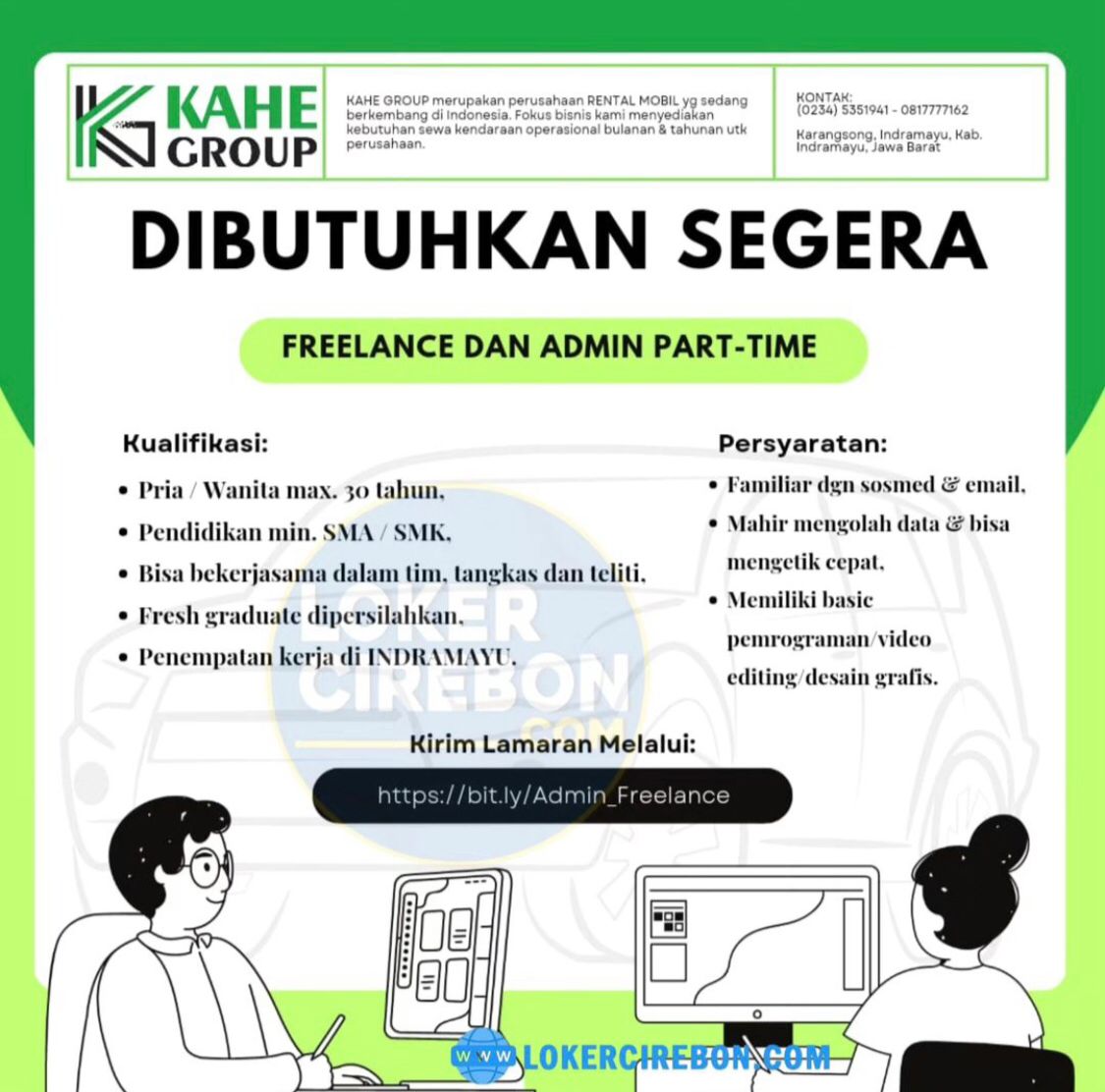 CV. Kahe Group sedang mencari kandidat karyawan yang handal dan profesional yang akan ditempatkan di posisi :