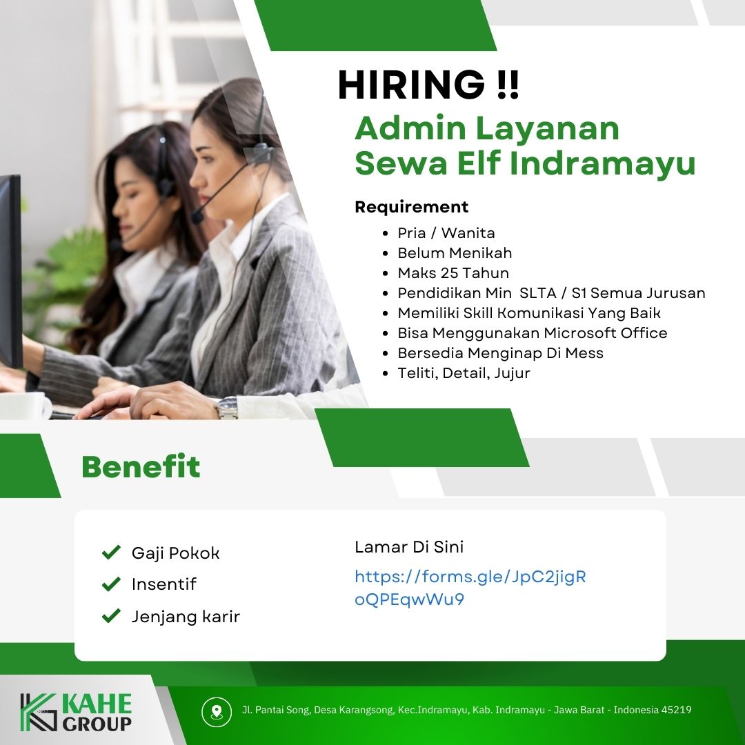 Kami membuka lowongan kerja untuk posisi Admin Layanan yang berdedikasi dan memiliki kemampuan komunikasi yang baik. Jika Anda memiliki pengalaman dalam pelayanan pelanggan dan administrasi, segera kirimkan CV Anda!.