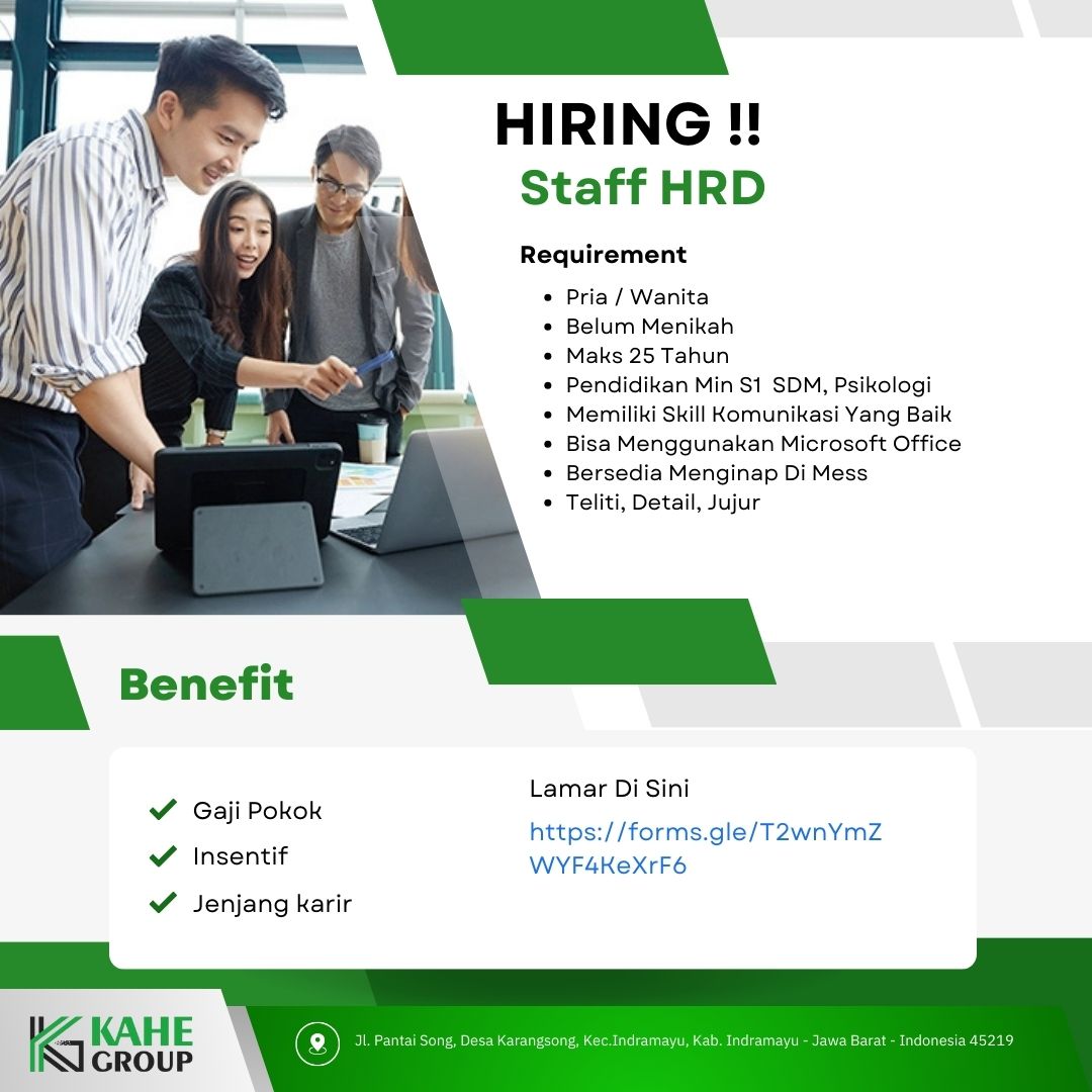 Kami membuka lowongan untuk posisi Staf HRD! Jika Anda memiliki semangat tinggi dalam bidang pengelolaan SDM dan ingin mengembangkan karier, ini kesempatan Anda. Kirimkan CV dan lamaran Anda sekarang!.